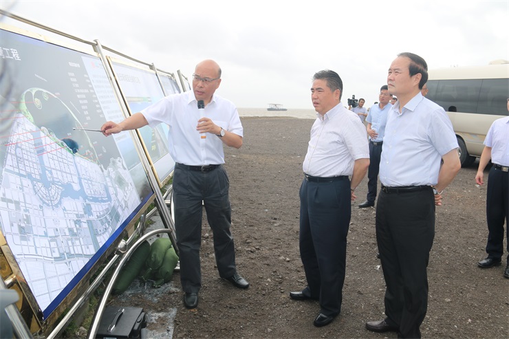 首先,項(xiàng)雪龍書記一行來到城市新中心藍(lán)色海灣基礎(chǔ)工程項(xiàng)目考察,在聽取集團(tuán)周文軍董事長的匯報(bào)介紹后,項(xiàng)書記充分肯定集團(tuán)在國家海洋局禁止各類圍填海項(xiàng)目報(bào)批前5天取得用海批復(fù),為項(xiàng)目實(shí)施提供保障。同時要求各相關(guān)部門要全力支持、配合集團(tuán)實(shí)施藍(lán)色海灣基礎(chǔ)工程,將藍(lán)色海灣基礎(chǔ)工程打造成為黃海之濱上一顆璀璨的明珠。